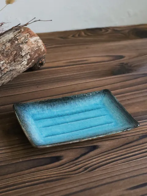 落雪 藍油結晶 手造丸切立皿