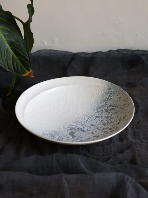 泥錆粉引 千段 9吋皿
