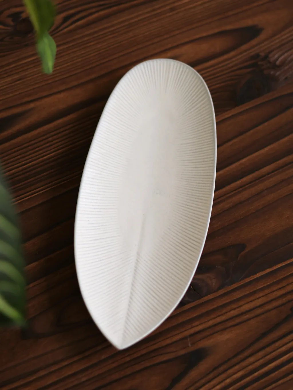 葉瓷刷毛 日製 12吋長皿 白練